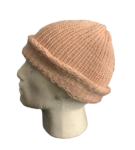 Rose Pink Skull Cap, Beanie, Dockers Hat, Fishermen Cap, Skully (KNITTED)