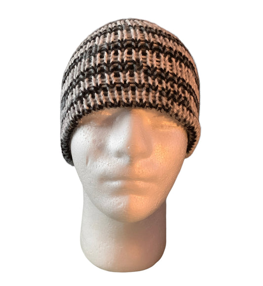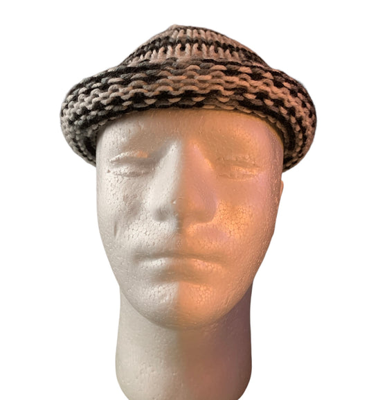 Black,White & Grey Flap Tap Docker, Docker Kufi, Docker Beanie, Fisherman Beanie, Fisherman Hat, Skull Cap (KNITTED)